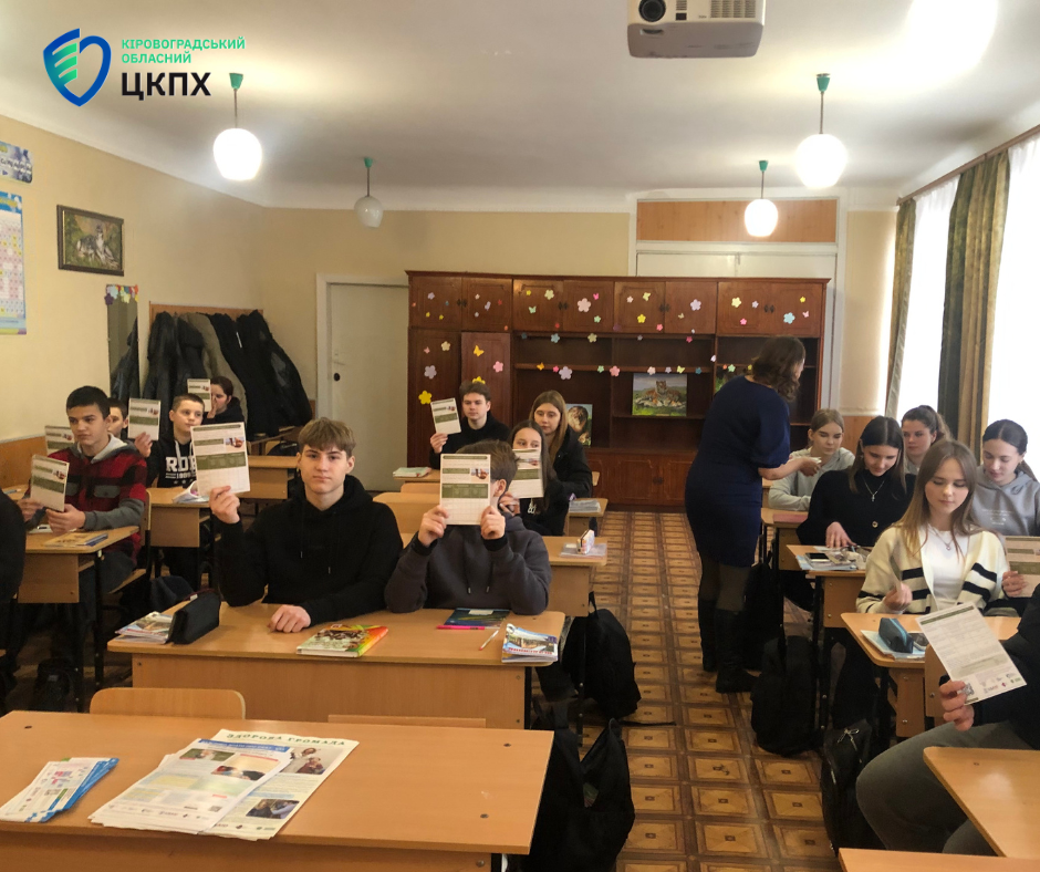 Протягом інформаційного тижня фахівці Центру завітали до 10 навчальних закладів у Кропивницькому та громадах області, розповсюдили інформаційні матеріали, зокрема листівки, плакати та брошури про профілактику сказу.