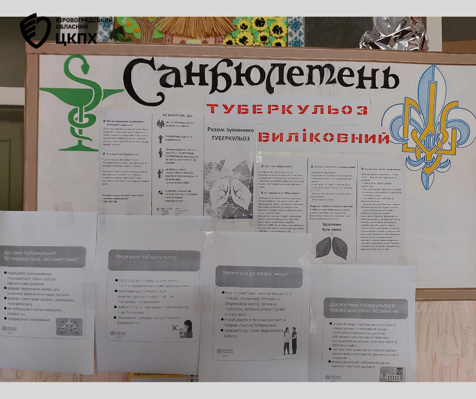 Фахівчині Новомиргородського відділення Новоукраїнського районного відділу Кіровоградського обласного центру контролю та профілактики хвороб провели інформаційно-просвітницьку роботу до Всесвітнього дня боротьби з туберкульозом та місяця боротьби з туберкульозом в Україні.