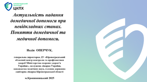 Головна державна санітарна лікарка регіону Надія Оперчук разом з фахівцями відділів Кіровоградського обласного центру контролю та профілактики хвороб організували та провели захід із безперервного професійного розвитку на тему «Навички надання домедичної допомоги при невідкладних станах».