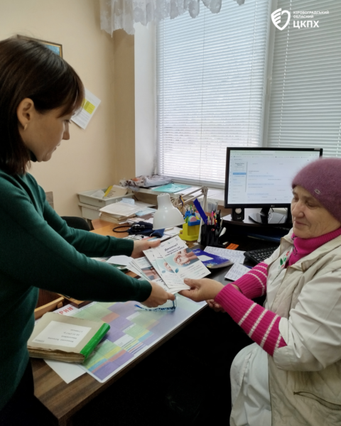 Під час бесід фахівці розповсюдили листівки та пам’ятки серед відвідувачів та пацієнтів закладів охорони здоров’я, а саме: КНП «ЦПМСД Світловодської міської ради», Глинської амбулаторії загальної практики сімейної медицини та Микільської амбулаторії загальної практики сімейної медицини.