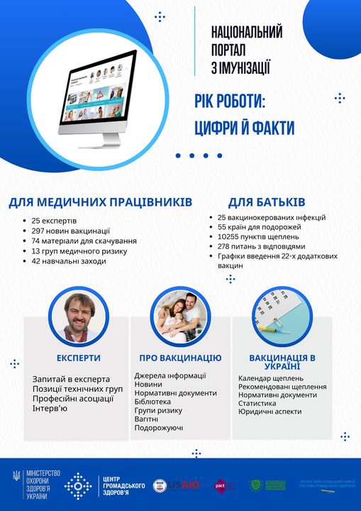 Цього тижня відзначаємо одразу дві важливі події: старт Європейського тижня імунізації 2024 та річницю офіційного запуску Національного порталу з імунізації, що відбувся 24 квітня 2023 року під час минулорічного Європейського тижня імунізації!