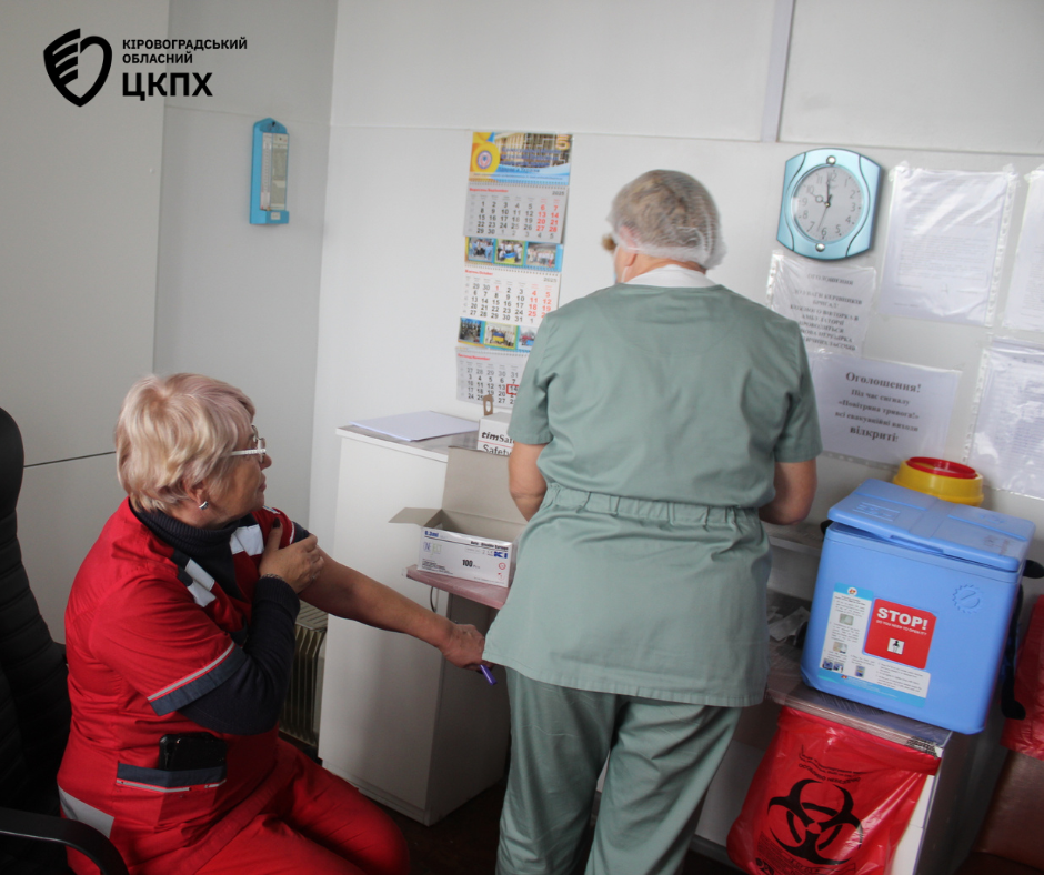 За ініціативи головної державної санітарної лікарки Кіровоградської області Надії Оперчук 20 медичних працівників КНП «ЦЕМД та МК у Кіровоградській області КОР» вакцинувалися проти грипу.