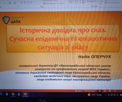 Головна державна санітарна лікарка Кіровоградської області Надія Оперчук разом із фахівцями Кіровоградського обласного центру контролю та профілактики хвороб провели майстер-клас на тему: «Сказ. Основи епідеміології, клініки, лабораторної діагностики, організація та проведення антирабічних заходів».