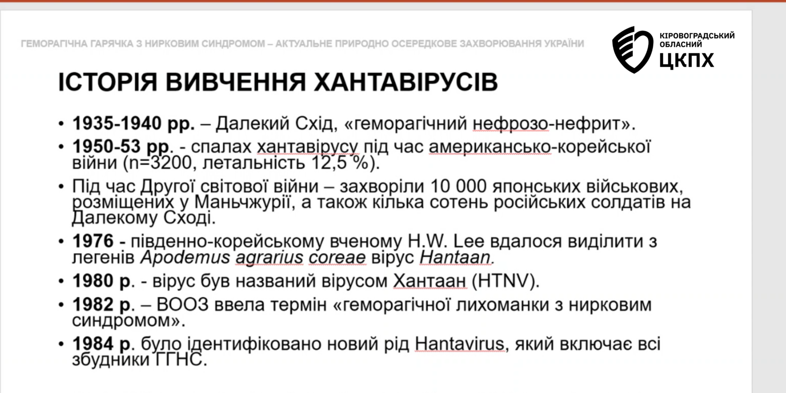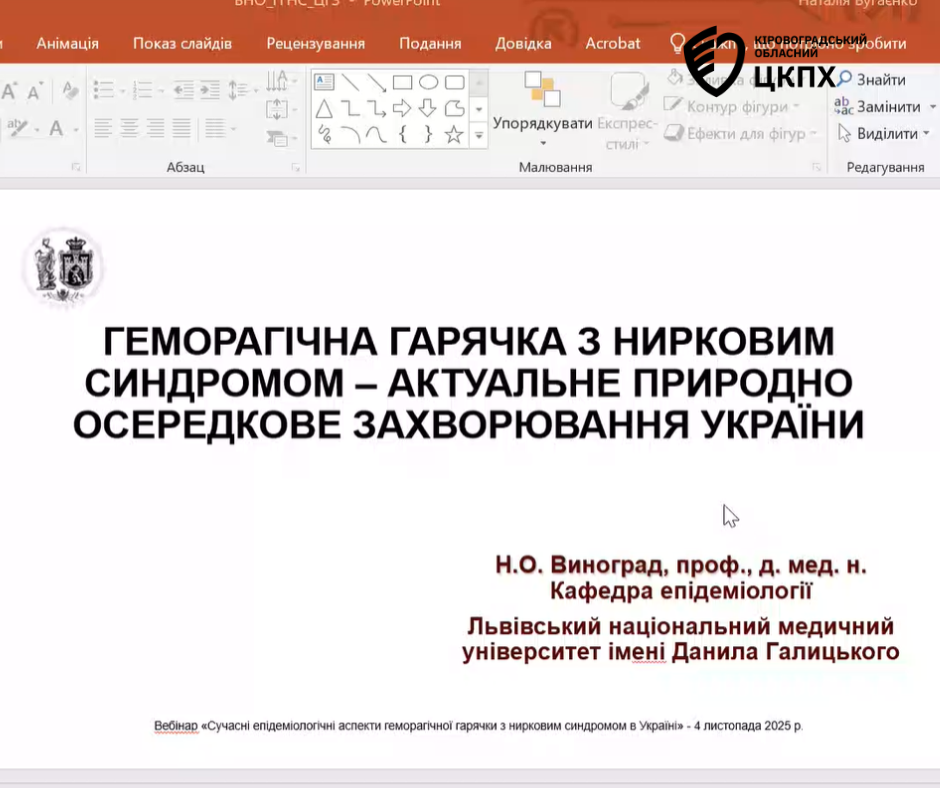 Фахівчині Кіровоградського обласного центру контролю та профілактики хвороб взяли участь у вебінарі «Сучасні епідеміологічні аспекти геморагічної гарячки з нирковим синдромом в Україні», організованому Центром громадського здоров’я.