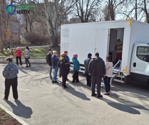 Цього разу мобільна амбулаторія працювала в селищі Гірничому, де фахівці Центру безоплатно проводили тестування та консультування щодо таких захворювань, як ВІЛ, туберкульоз, вірусні гепатити та інших інфекцій.