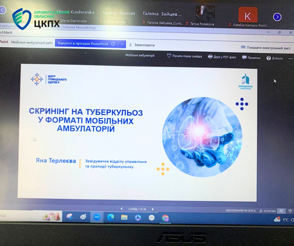 Головна державна санітарна лікарка Кіровоградської області Надія Оперчук разом з фахівцями відділу епідеміологічного нагляду та профілактики інфекційних хвороб взяли участь у вебінарі на тему “Туберкульоз” для забезпечення ефективної роботи мобільних амбулаторій.
