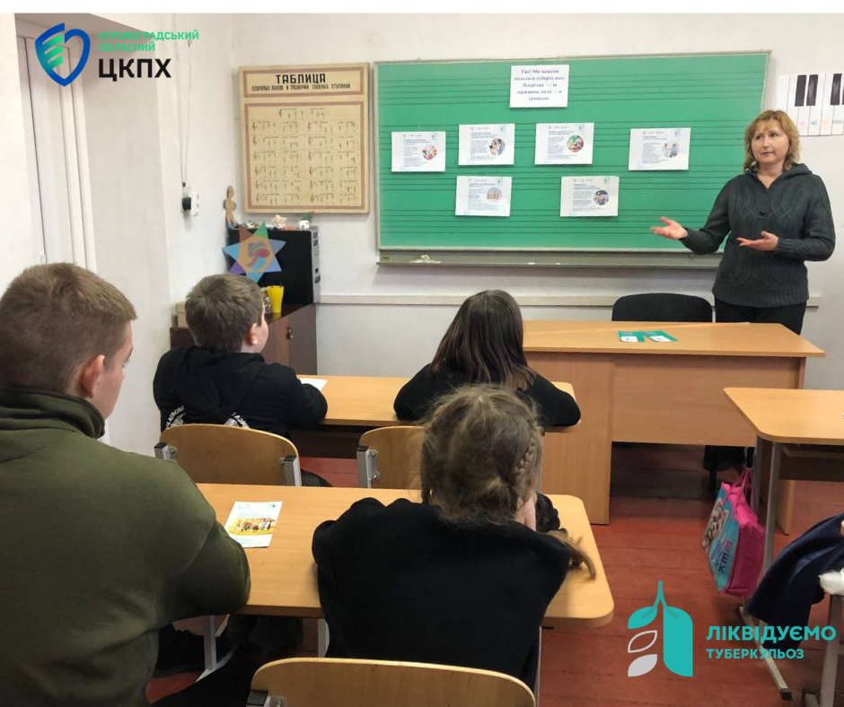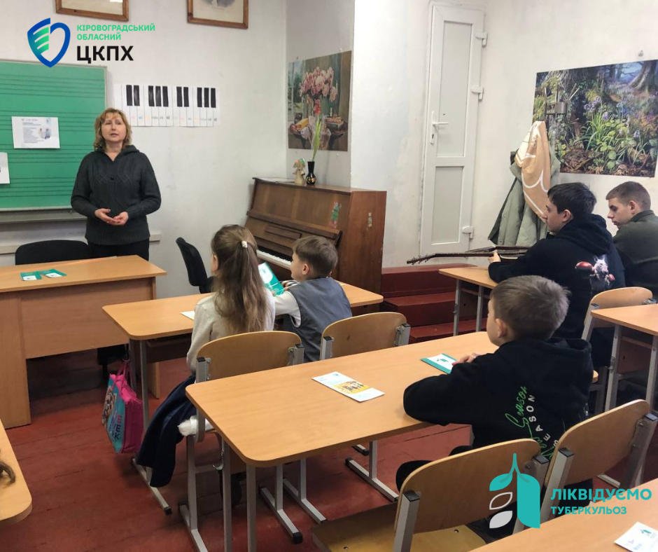 Фахівчиня Гайворонського відділення Голованівського районного відділу Кіровоградського обласного центру контролю та профілактики хвороб Світлана Кольченко у межах місяця подолання туберкульозу провела просвітницький захід у Гайворонській школі мистецтв.