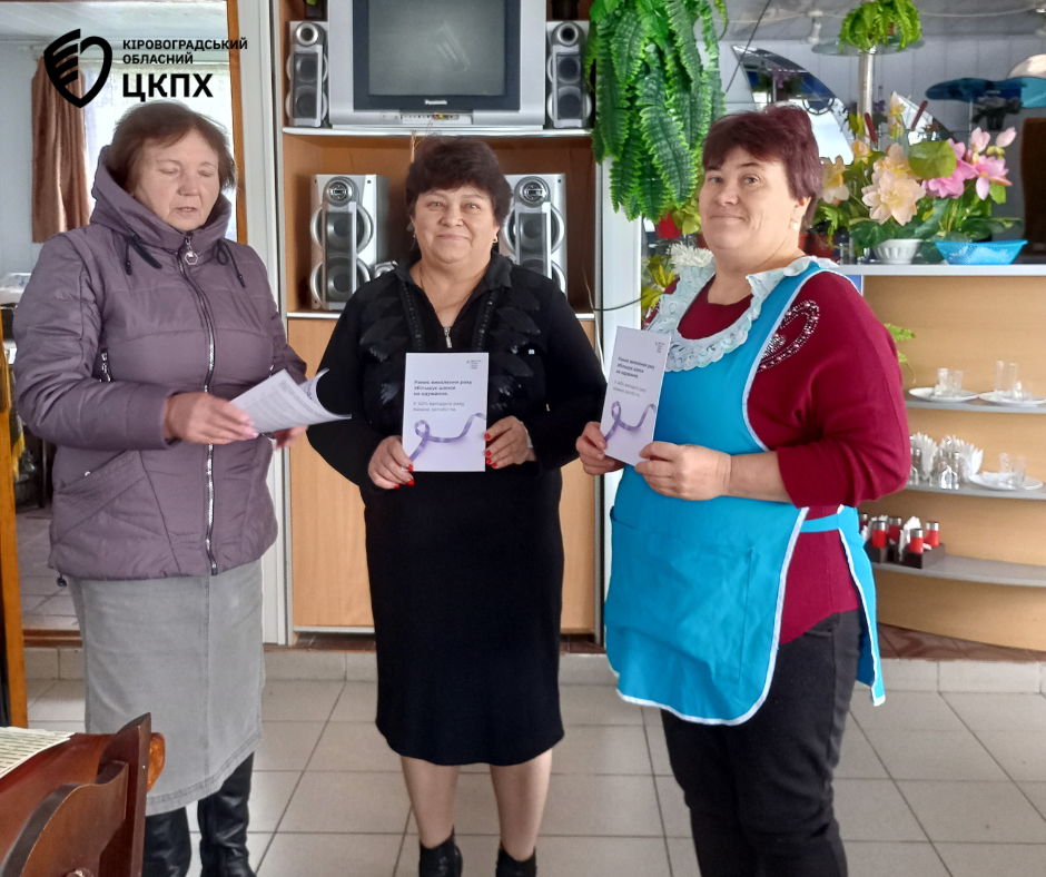 Там роздали матеріали для проведення бесід із працівниками. Фахівці розповіли, що це за хвороба, про фактори її розвитку та чинники, які знижують ризик захворіти, та обов’язкове проведення самообстеження молочних залоз.