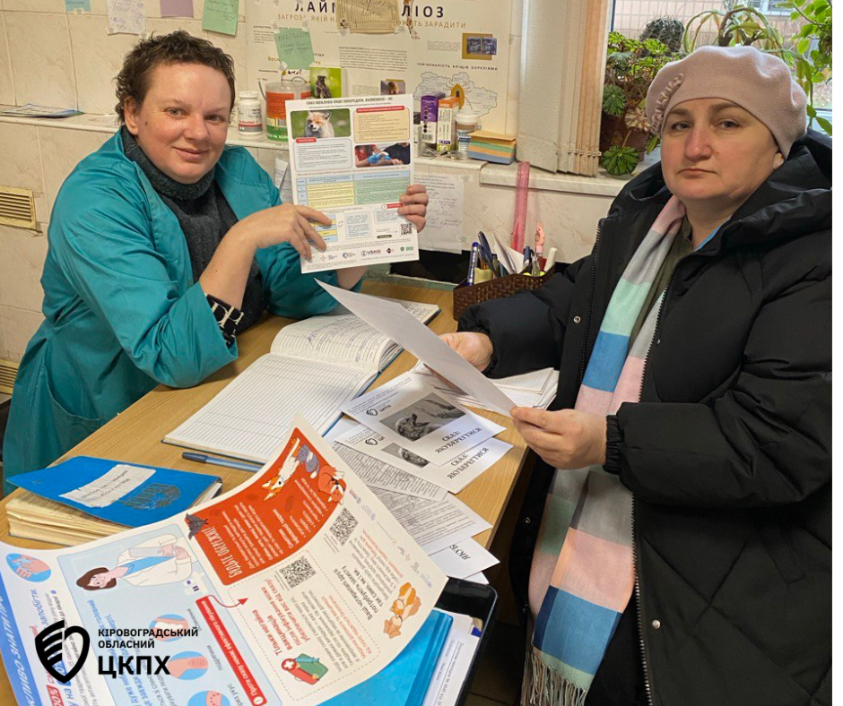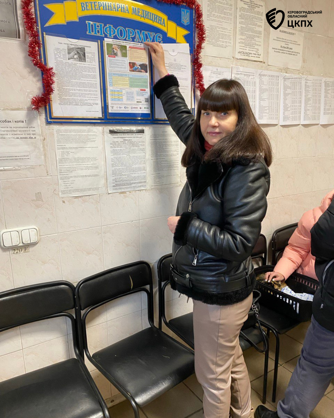 В межах тижня обізнаності про сказ помічниці лікаря-епідеміолога відділу епідеміологічного нагляду та профілактики інфекційних хвороб Кіровоградського обласного центру контролю та профілактики хвороб Ірина Бондар та Людмила Петухова відвідали Кропивницьку районну державну лікарню ветеринарної медицини. Провели бесіди на тему сказу і розповсюдили друковані матеріали щодо профілактики цієї небезпечної хвороби серед медичного персоналу, відвідувачів ветклініки та мешканців міста.