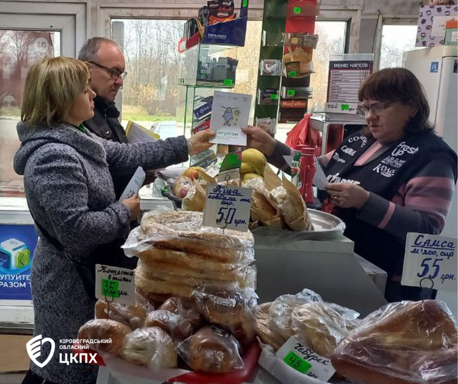 Фахівчиня відділу епідеміологічного нагляду та профілактики неінфекційних захворювань Кіровоградського обласного центру контролю та профілактики хвороб Ніна Синько разом із представниками Головного управління Держпродспоживслужби у Кіровоградській області, управління по сприянню розвитку торгівлі та побутового обслуговування населення Кіровоградської міської ради, головного управління Національної поліції у Кіровоградській області взяла участь у комплексних рейдових візитах до закладів швидкого харчування в м. Кропивницький.