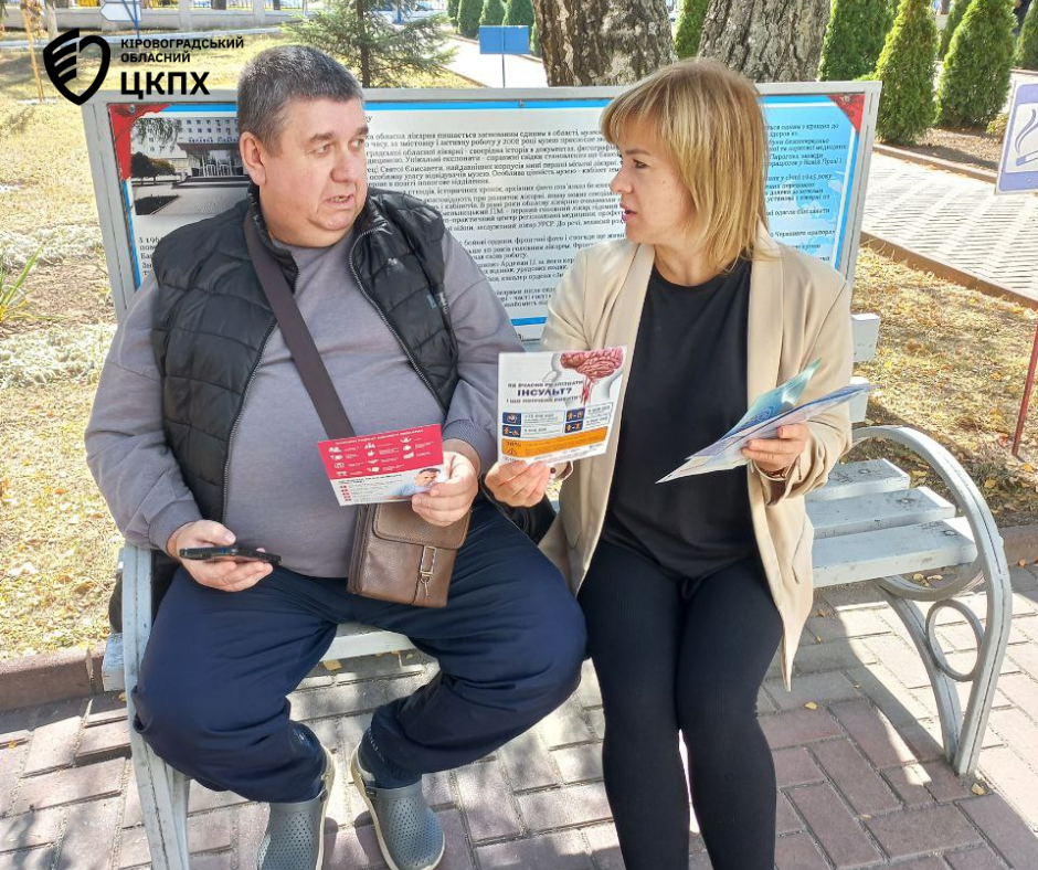 З метою підвищення обізнаності про серцево-судинні захворювання та популяризації здорового способу життя, фахівці відділу епідеміологічного нагляду та профілактики неінфекційних хвороб Кіровоградського обласного центру контролю та профілактики хвороб Ольга Агапова та Ніна Синько здійснили захід до Всесвітнього дня серця з роздачею тематичних друкованих матеріалів.