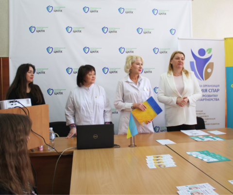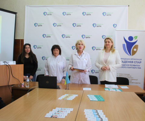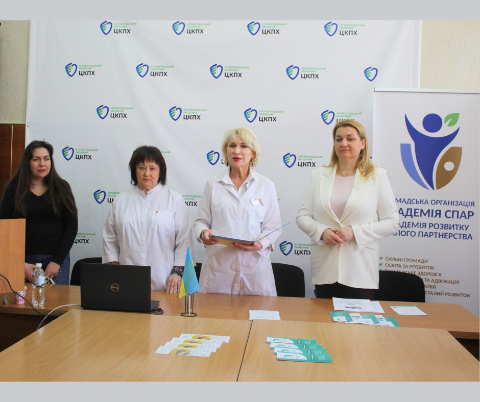 Генеральна директорка Кіровоградського обласного центру контролю та профілактики хвороб Надія Оперчук та засновниця ГО «Академія розвитку сталого партнерства» Ірина Торбенко в урочистій обстановці відкрили школу громадського здоров’я.