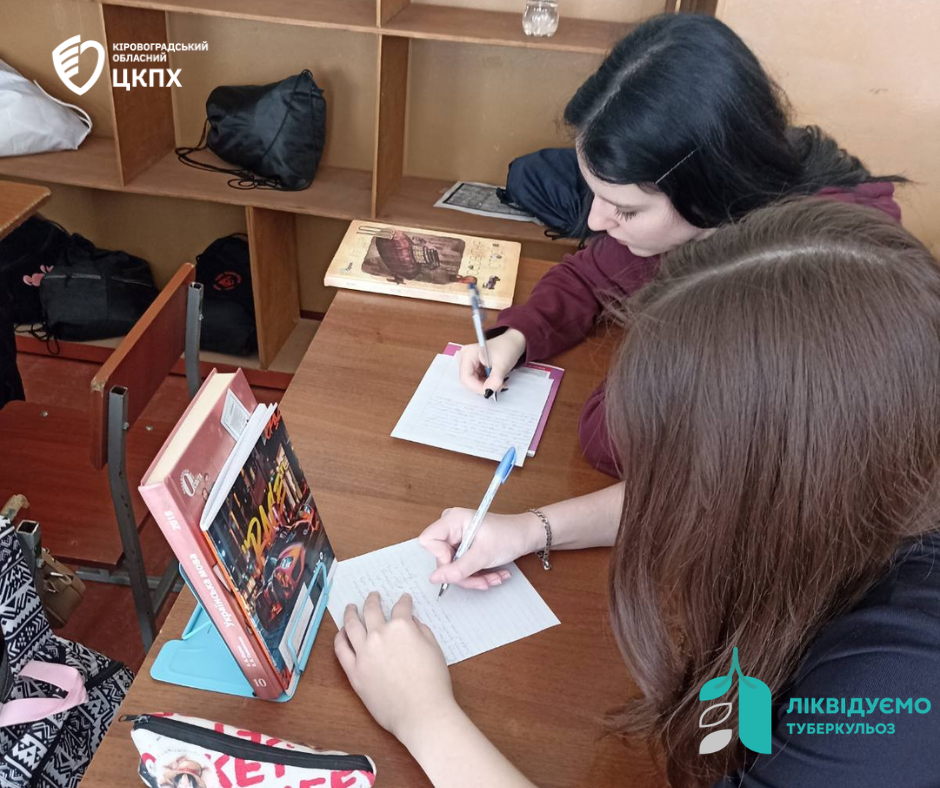 Також учні 9–11 класів написали шкільні диктанти на тему «Туберкульоз – невидимий ворог», а для восьмикласників організували перегляд документального ролика «Туберкульоз виліковний». Для учнів 2, 4, 5 та 8 класів фахівці провели виховні години «Міфи та реальність про туберкульоз».