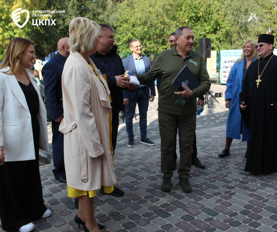 До урочистостей долучилися начальник Кіровоградської обласної військової адміністрації Андрій Райкович, заступниця очільника ОВА Катерина Колтунова, заступник міського голови з питань діяльності виконавчих органів ради Олександр Мосін, секретар міської ради Олег Колюка, директорка департаменту соціальної політики Кропивницької міськради Юлія Вовк, голова ГО «Відчувай» Лілія Місюня, фахівці центру життєстійкості.