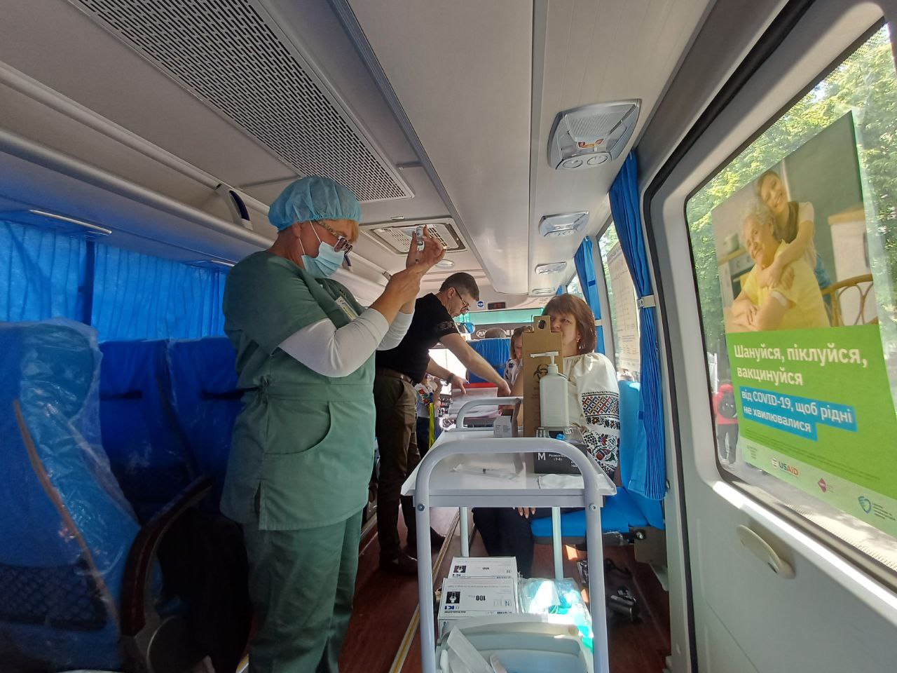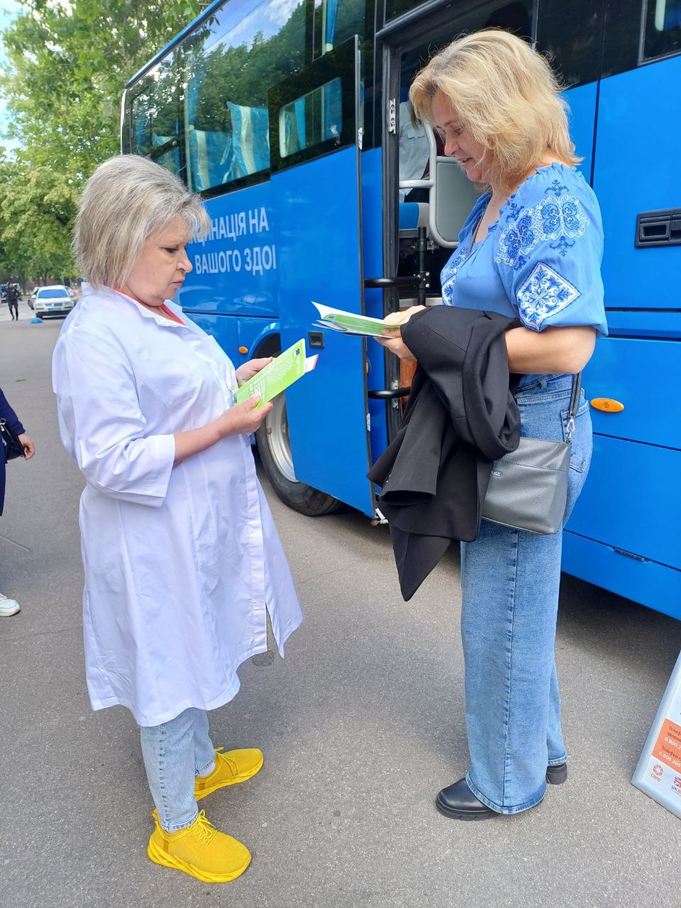 В автобусі працювали дві мобільні бригади лікарів. Консультували й надавали рекомендації щодо інфекційних та неінфекційних хвороб.