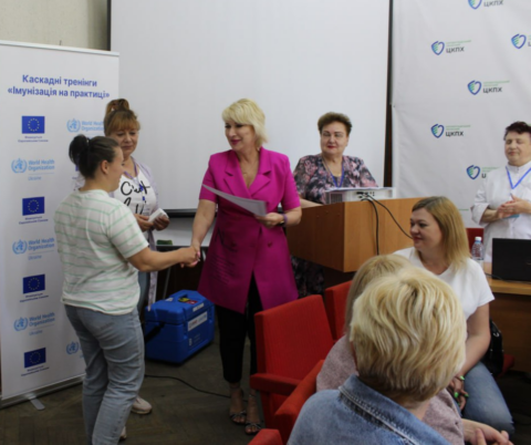 Тренінг за підтримки ВООЗ для працівників державних та комунальних закладів охорони здоров’я: лікарів та середнього медичного персоналу, відповідальних за проведення профілактичних щеплень, провели у межах заходів із імунізації.