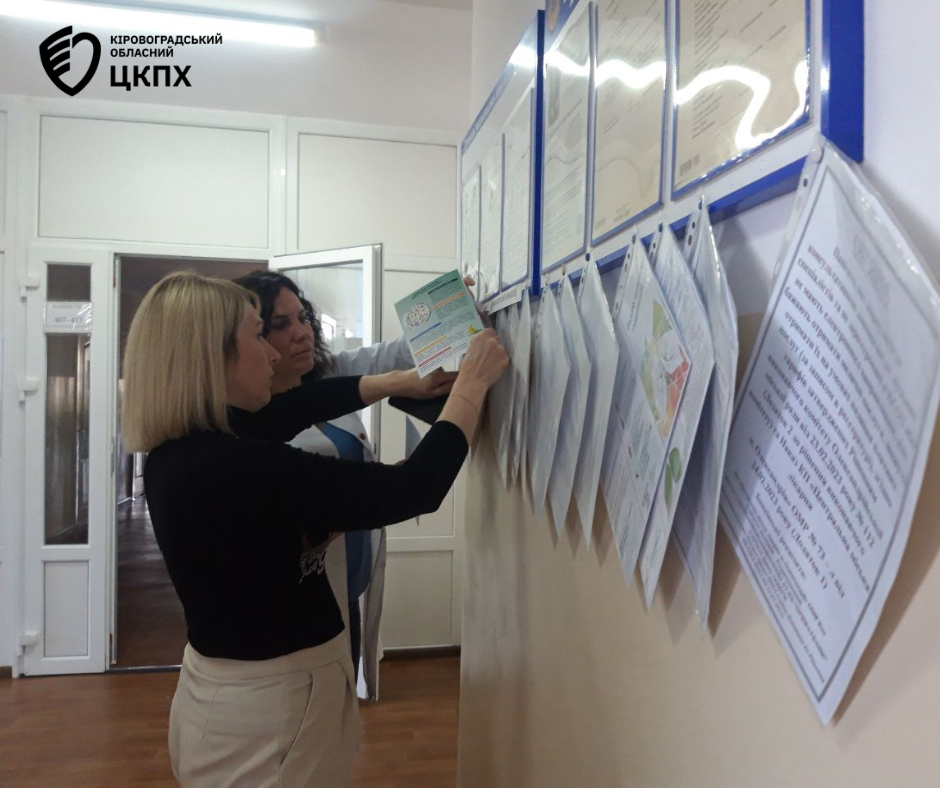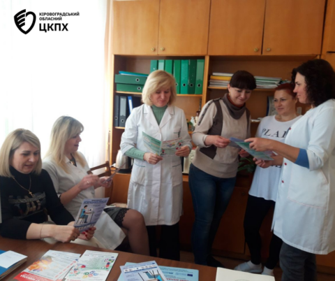 Фахівці Олександрійського районного відділу Кіровоградського обласного центру контролю та профілактики хвороб надали інформаційні матеріали та провели бесіди з відвідувачами і спіаробітниками поліклінічного відділення Центральної міської лікарні в райцентрі.