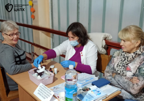 Професіоналка з громадського здоров’я відділення епідеміологічного нагляду та профілактики неінфекційних хвороб Олена Лєдовська та завідувачка відділення епідеміологічного нагляду та профілактики інфекційних хвороб Ольга Чабан провели інформаційно-просвітницьку роботу з відвідувачами щодо важливості активного довголіття та профілактики захворювань у поважному віці: як інфекційних так і неінфекційних.