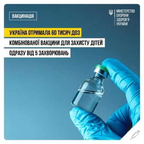 Кіровоградський обласний центр контролю та профілактики хвороб спільно з МОЗ України інформують: в Україну доставили 60 тисяч доз комбінованої вакцини, що захищає дітей одразу від п’яти захворювань.
