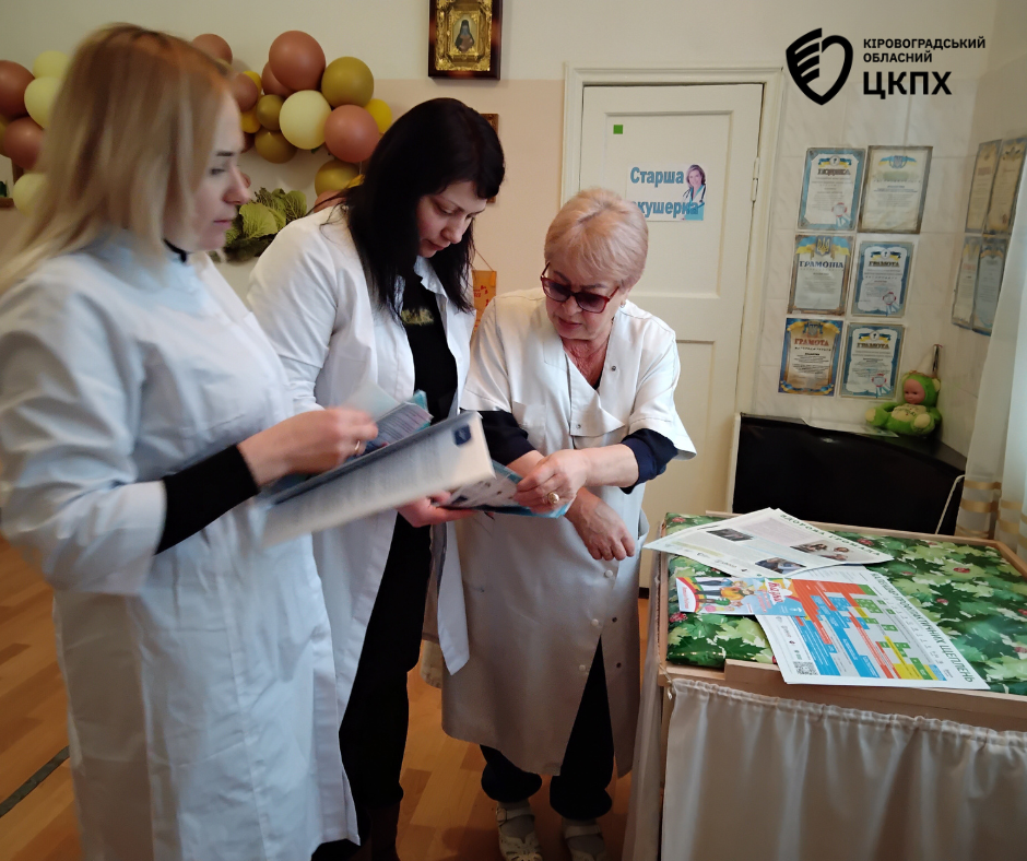 Фахівчині відділення епідеміологічного нагляду та профілактики інфекційних хвороб Олександрійського районного відділу Кіровоградського обласного центру контролю та профілактики хвороб завідувачка відділенням Ольга Чабан, помічниці лікаря-епідеміолога Маргарита Мамалат та Олена Панченко провели інформаційно-просвітницьку роботу в закладах охорони здоров’я: КП «ЦМЛ м.Олександрії» ОМР, КП «ЦПМСД м.Олександрії» ОМР та в 7-ми підпорядкованих амбулаторіях.