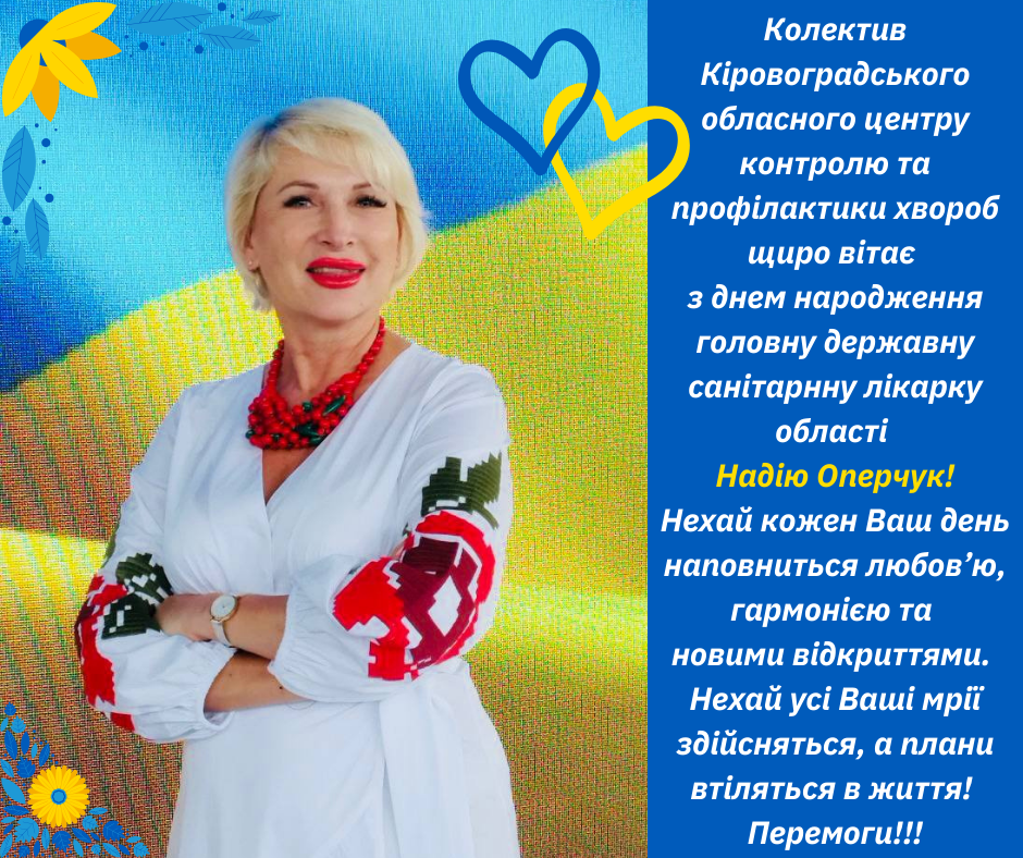 Сьогодні, 5 серпня, свій день народження відзначає головна державна санітарна лікарка Кіровоградської області Надія Оперчук.