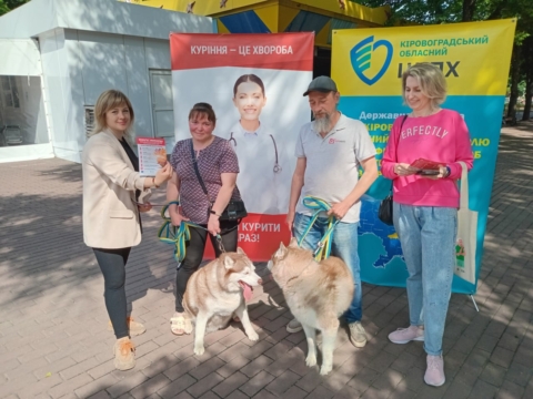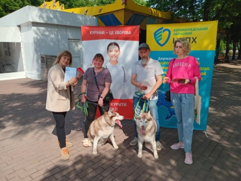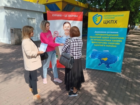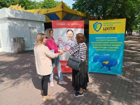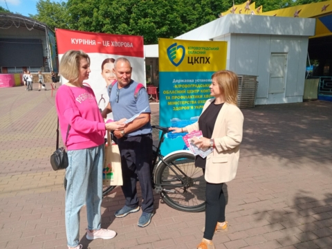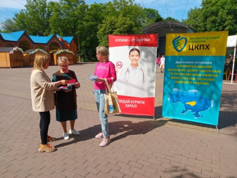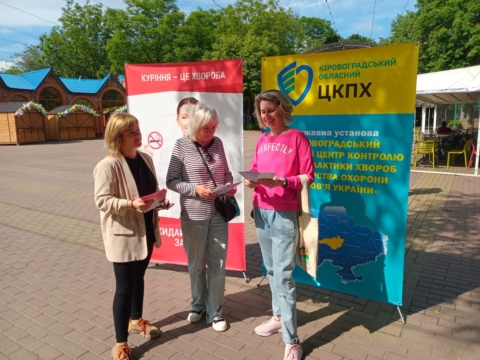 Фахівчині відділу епідеміологічного нагляду (спостереження) та профілактики неінфекційних захворювань Кіровоградського обласного центру контролю та профілактики хвороб Олена Перькова та Ніна Синько провели бесіди та роздавали наочні матеріали на локації у парковій зоні підприємства Корпорація «ХХІ століття» – Дендропарк.