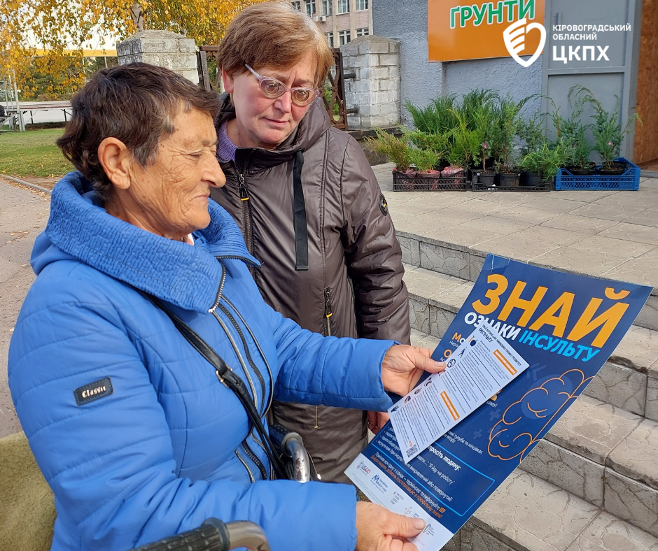 З метою привернути увагу населення Новомиргородської громади до проблем, пов’язаних із судинно-мозковими захворюваннями, фахівці Новомиргородського відділення Новоукраїнського районного відділу Олена Грабова та Олена Скрипак провели санітарно-просвітницьку та роз’яснювальну роботу. Захід відбувся в межах Всесвітнього тижня боротьби з інсультом.