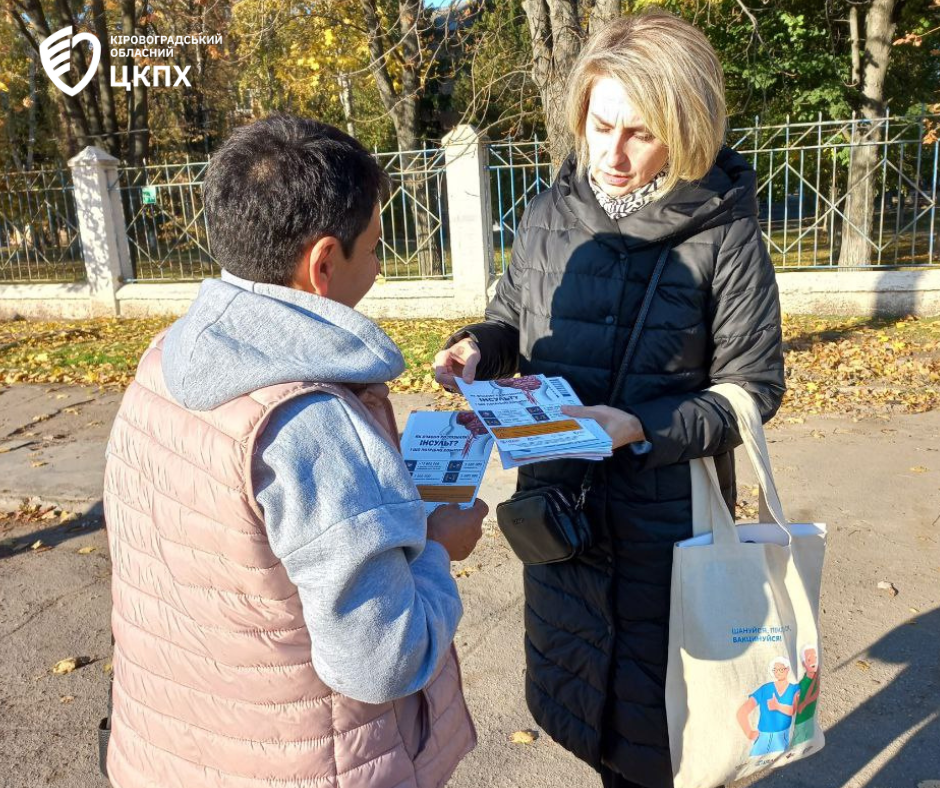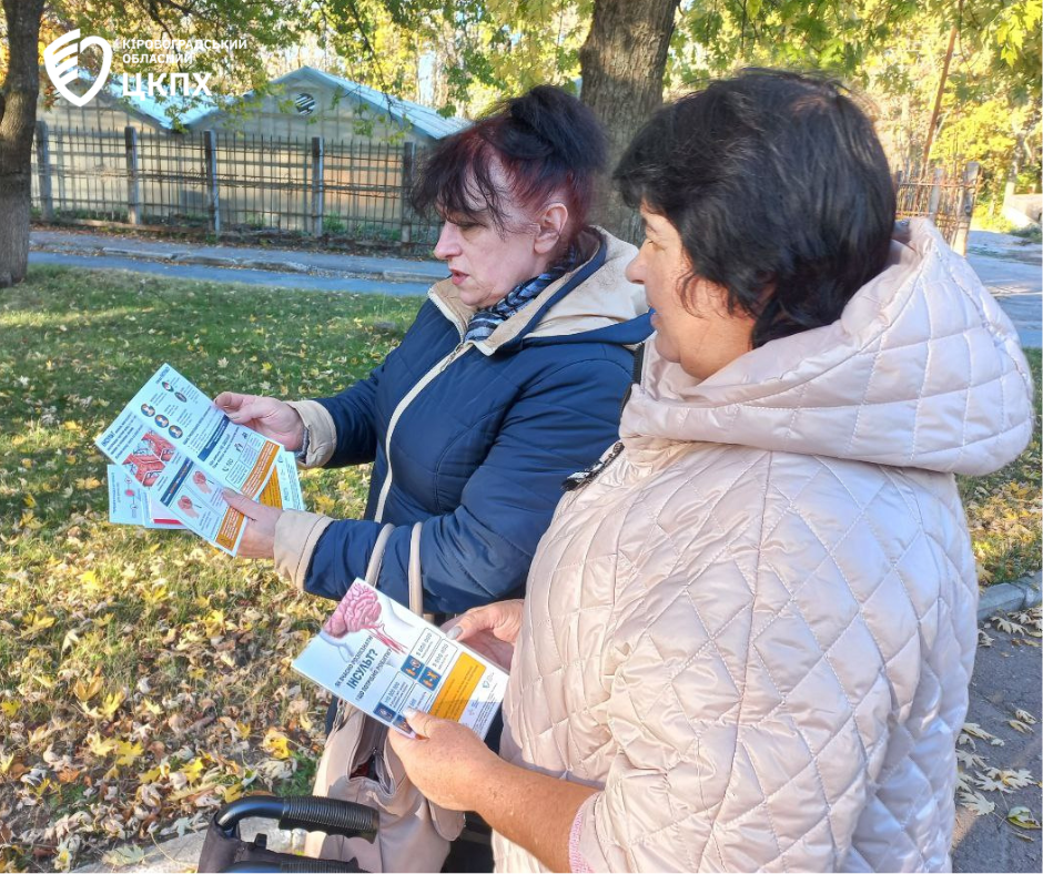 До Всесвітнього тижня боротьби з інсультом (28 жовтня – 3 листопада 2024 року) фахівці відділу епідеміологічного нагляду (спостереження) та профілактики неінфекційних захворювань Кіровоградського обласного центру контролю та профілактики хвороб Олена Перькова та Ольга Агапова, на теріторії КНП «Кіровоградська обласна лікарня Кіровоградської обласної ради» та у місцях масового скупчення людей провели бесіди з роздачею інформаційних матеріалів.