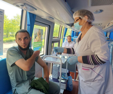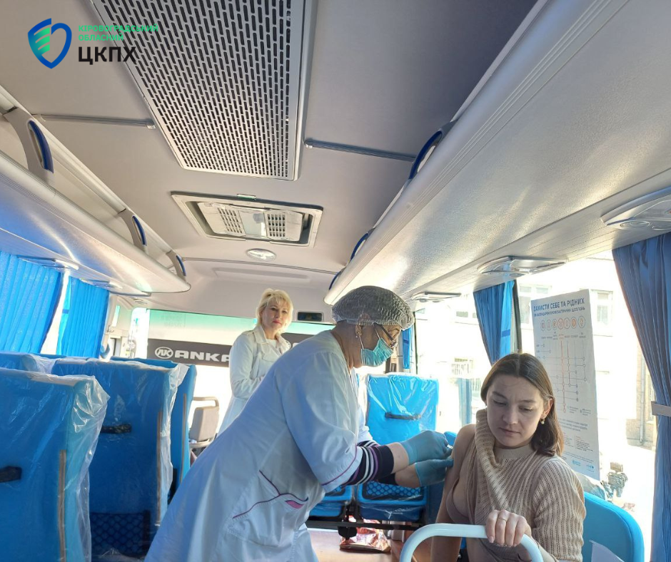 За ініціативи головної державної санітарної лікарки області Надії Оперчук та спеціалістів відділу імунопрофілактики Кіровоградського обласного центру контролю та профілактики хвороб відбулася чергова виїзна вакцинальна сесія за участі спеціального вакцинального автобуса. Працювали у селищі Новому на території Кіровоградської обласної психіатричної лікарні.