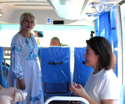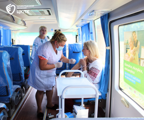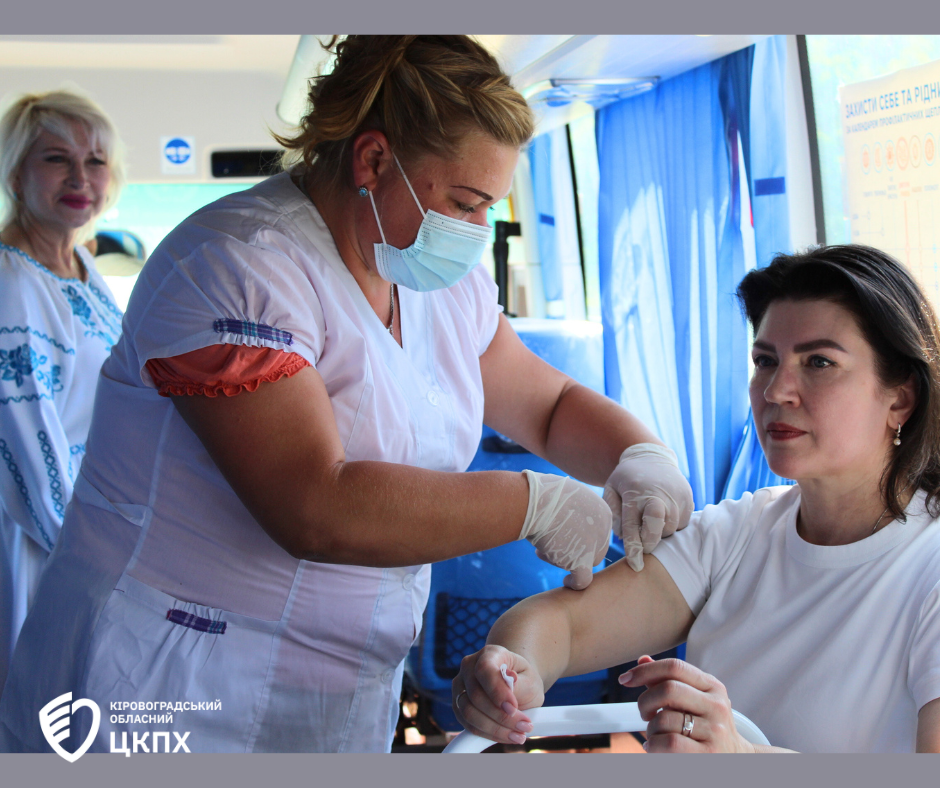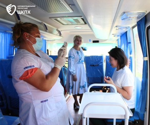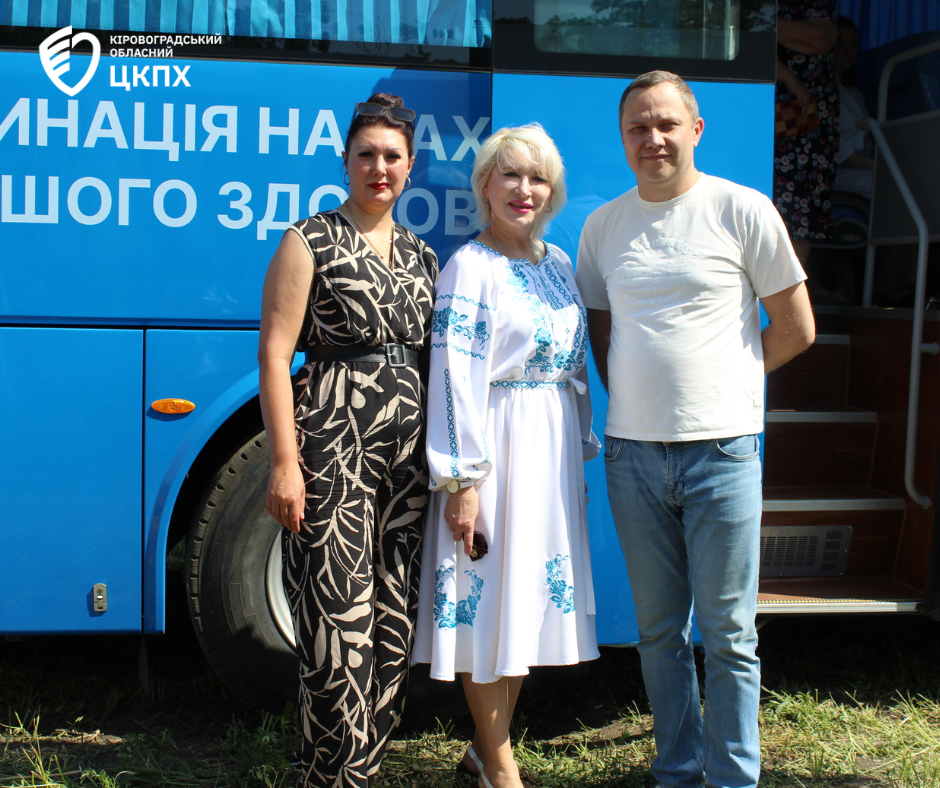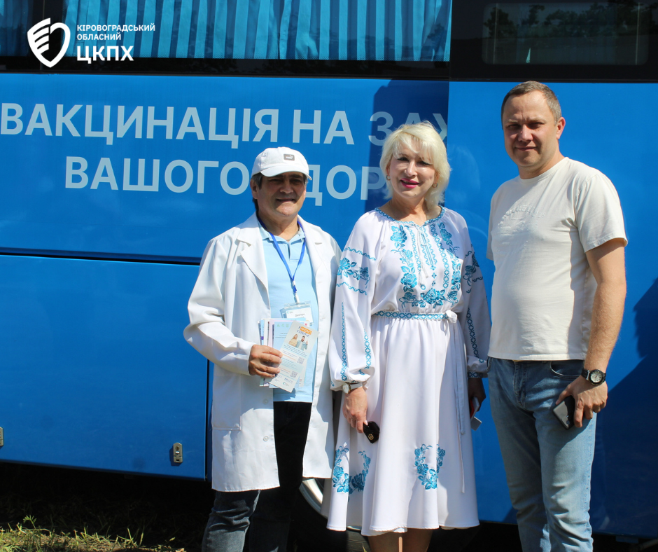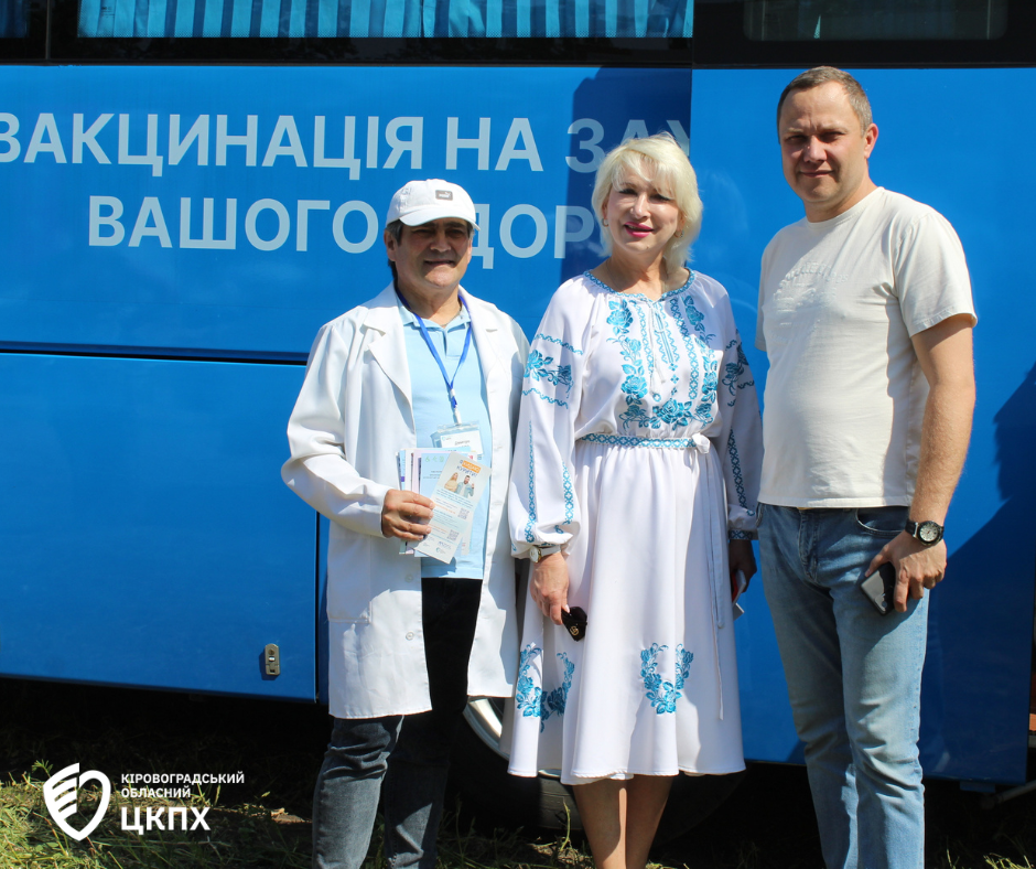 Головна державна санітарна лікарка області Надія Оперчук разом із фахівцями Кіровоградського обласного центру контролю та профілактики хвороб під час заходів до Міжнародного дня поля у селі Созонівка провели масову вакцинацію у спеціальному автобусі ДУ «Кіровоградський обласний центр контролю та профілактики хвороб МОЗ України».