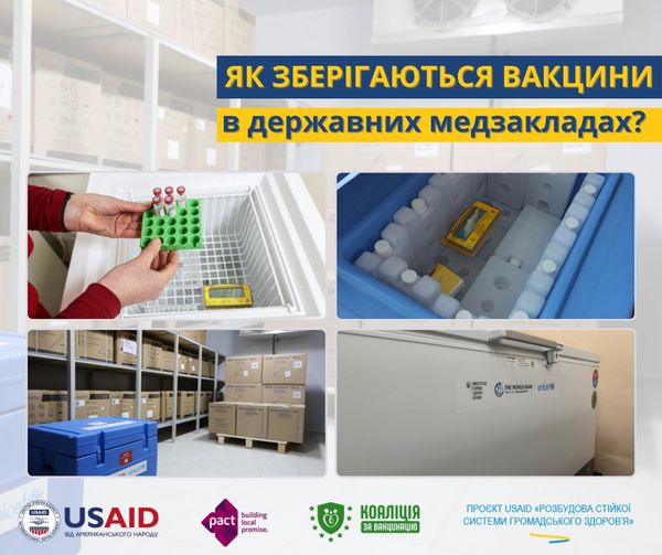 Усі склади оснащені холодильними камерами, а медичні заклади та пункти щеплень — спеціалізованими холодильниками.