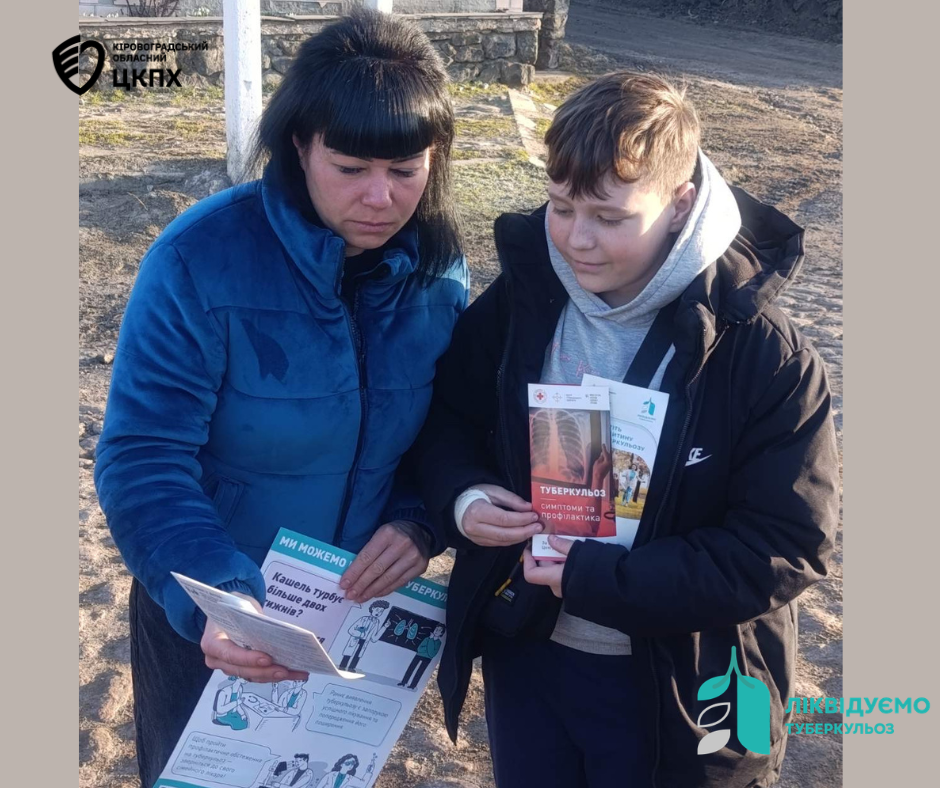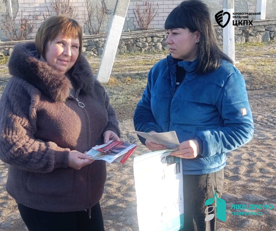 Серед жителів Смолінської та Маловисківської територіальних громад, відвідувачів Новоукраїнського районного відділу Центру поширили лефлети і листівки: «Туберкульоз – симптоми та профілактика», «Дихаєш? Значить це стосується тебе», та провели бесіди серед контактних осіб у потенційних осередках туберкульозу.