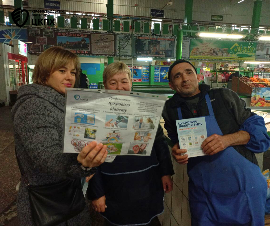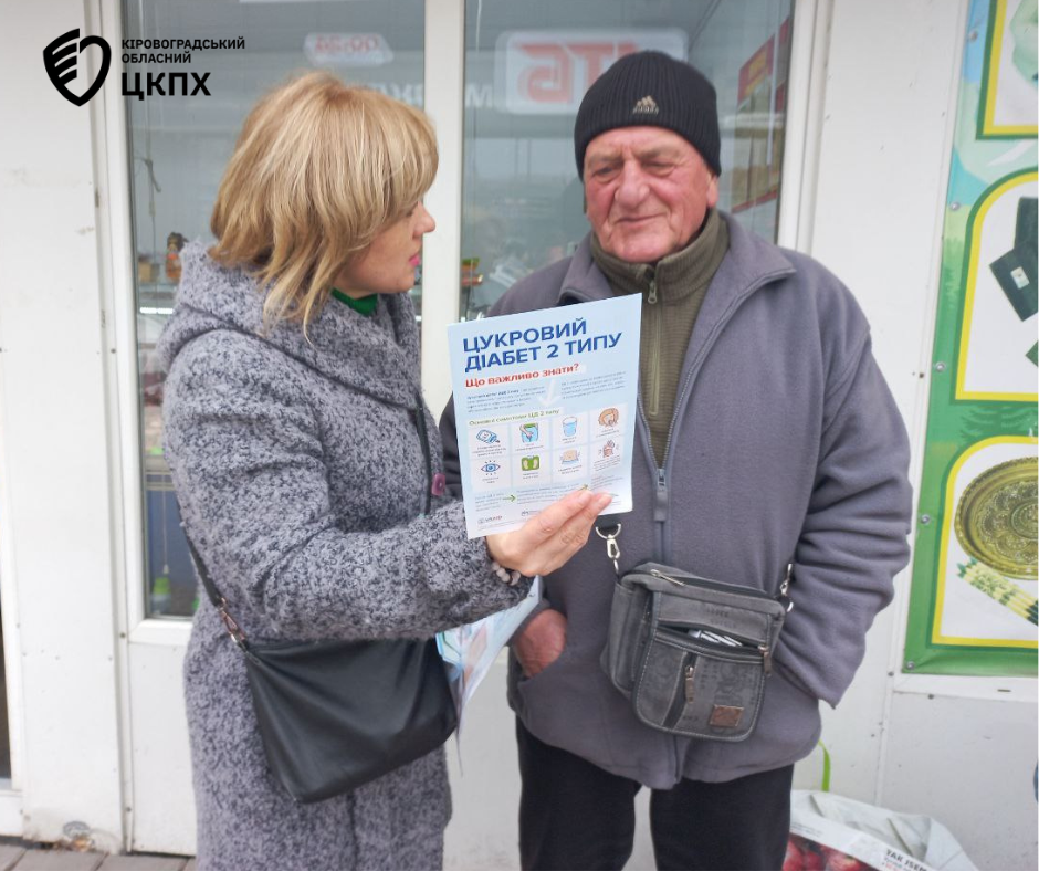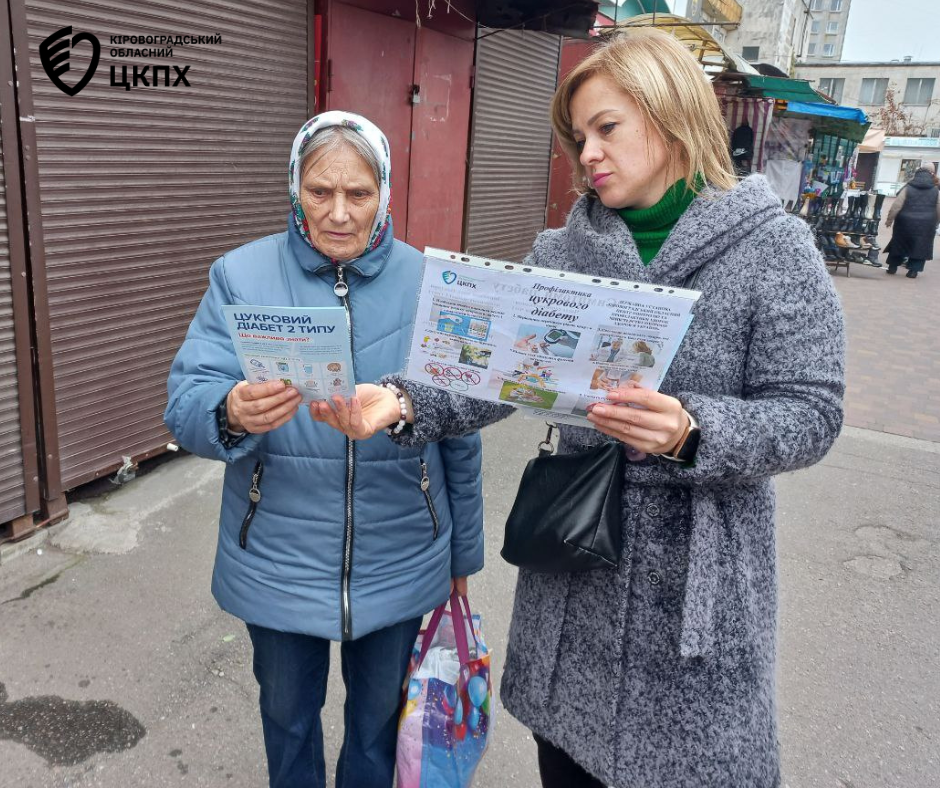 З метою інформування населення про фактори ризику виникнення цукрового діабету, його причини, симптоми та наслідки, фахівчині відділу епідеміологічного нагляду та профілактики неінфекційних хвороб Кіровоградського обласного центру контролю та профілактики хвороб здійснили захід до Дня боротьби проти діабету.