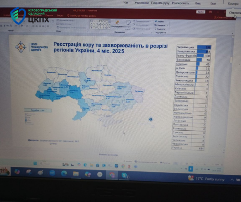 Головна державна санітарна лікарка Кіровоградської області Надія Оперчук разом з лікарями Кіровоградського обласного центру контролю та профілактики хвороб взяла участь у зустрічі щодо напруженої епідситуації з кором в Україні.