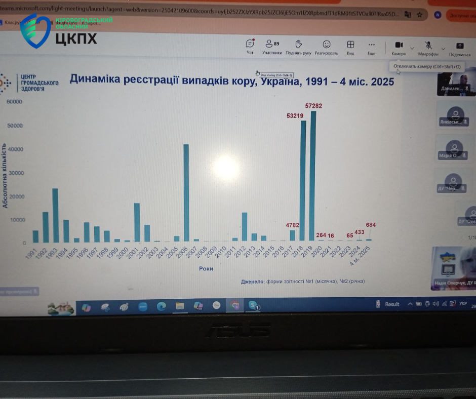 Розглянули статистичні дані щодо динаміки реєстрації кору в Україні за 4 місяці 2025 року.